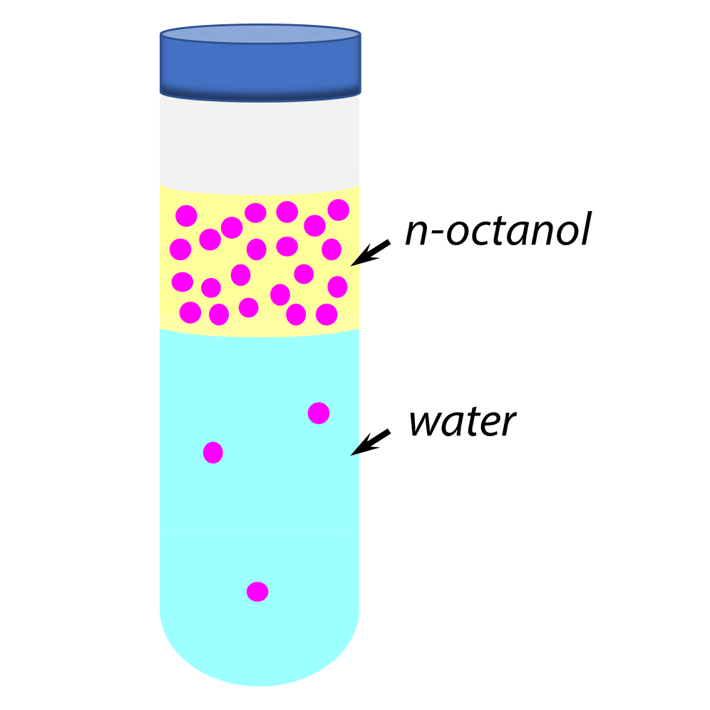 Drug lipophilicity is determined by measuring the distribution coefficient (LogD) in octanol/water for…